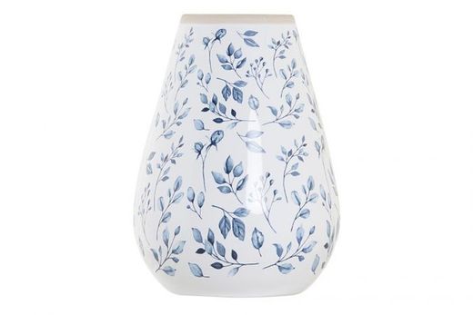 Jarrón de Porcelana Decoración Blanco con flores azules