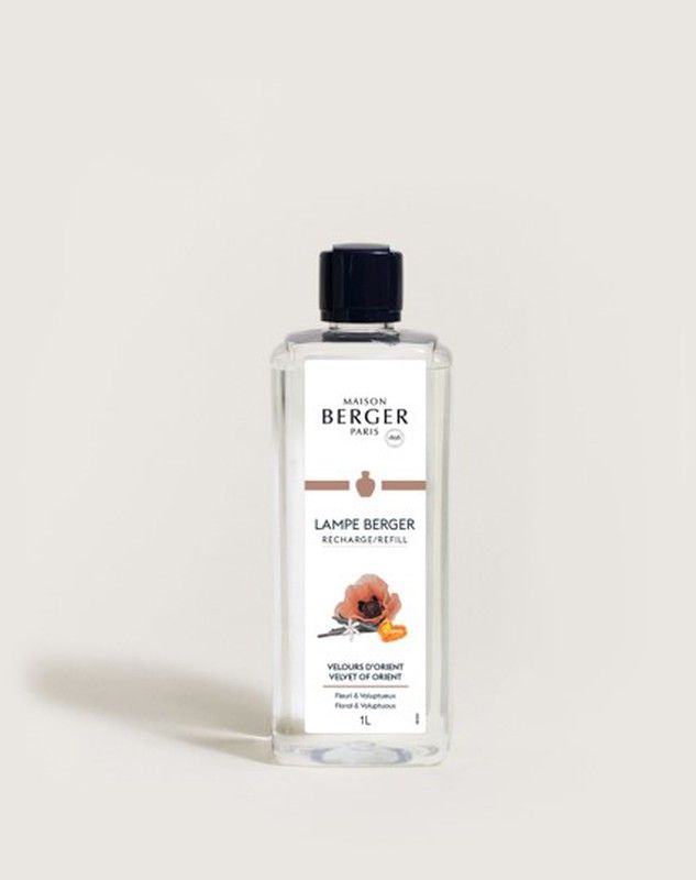 Perfume Ambientador especial para Lámpara Catalítica de la marca Lampe Berger, en su aroma velvet oriente. Caliente su interior con la adictiva recarga de lámpara Berger Velours d'Orient de 500ml con notas de flor de opio, pimienta rosa y vainilla. Un perfume trabajado en claroscuro: vibrante, sensual y adictivo. La energía de la flor del café electrifica una brazada de flores de opio y azahar con una feminidad asertiva. La composición está punteada con algunas facetas picantes, todas revelando el misterio y la glotonería de la vainilla sutilmente ambarina. Adictivo? Terriblemente.