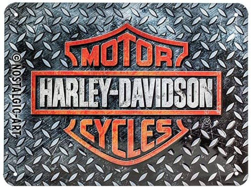 Placa Metálica de Alta Calidad de 15x20 cms cms fabricada en chapa de acero e impresa en relieve en múltiples capas. Se presenta en sobre de envoltorio individual. de diseño Harley-Davidson Diamond Plate Esta colección de postales, carteles y letreros de Decoración, son ideales para decorar Cafeterías, Restaurantes, Hoteles, Bares y Casas Rurales. Descubre toda la colección de Carteles y Placas Metálicas de Retro y Vintage de la marca Nostalgic Art. Esta marca es el referente para los amantes del coleccionismo de Imanes, Letreros y Carteles Metálicos, Cajas Metálicas, con diseños originales estilo Retro Vintage y Años 60. Placas de marcas de coche y moto como Fiat, BMW, Vespa.... O de marcas como Coca-Cola, Kellogs... ¡Descubre toda la colección! Uno de los regalos más originales y sorprendentes que puedas encontrar.