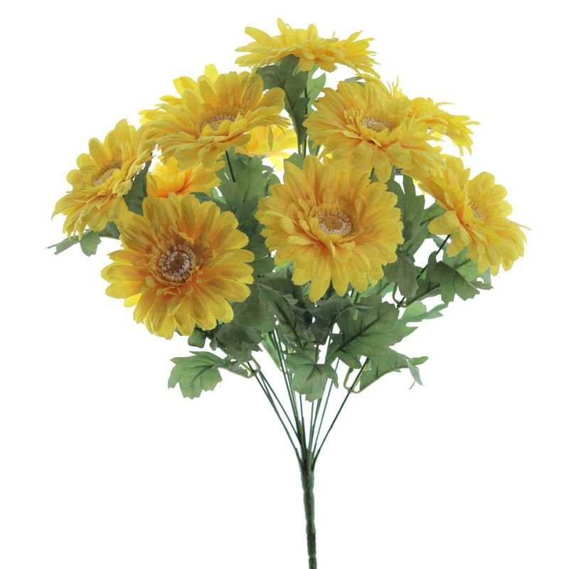 Te presentamos nuestra increíble colección de Flores y Plantas Artificiales en nuestra Tienda Online de Decoración para el Hogar. Seleccionamos las mejores marcas de Flores Artificales del Mercado y las hacemos llegar a tu casa de forma rápida y segura. ¡Miles de Artículos de Flor Artificial, Decoración, y Hogar de la mejor Calidad y con los diseños más actuales y exclusivos! ¡Los mejores acabados, y siempre a la última! Renovamos constantemente nuestro surtido incorporando muchas novedades. ¡Descubre todo nuestro surtido! Las flores y plantas artificiales de mayor calidad. Ideal para eventos, bodas, y creaciones de Arte Floral. Compra tu ramo de gerberas amarillas ahora y te lo enviamos a casa. ¡Te va a encantar! Ideal para tus jarrones, y dar así ese toque de color final que marca la diferencia.